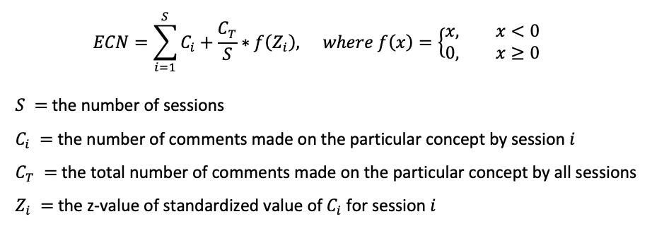 The ECN score is constructed to take into account how often a concept is discussed in one session and across all sessions and how many participants discussed that concept.
